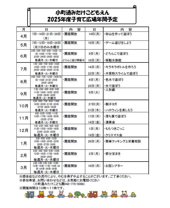 2025年度 子育て広場年間予定